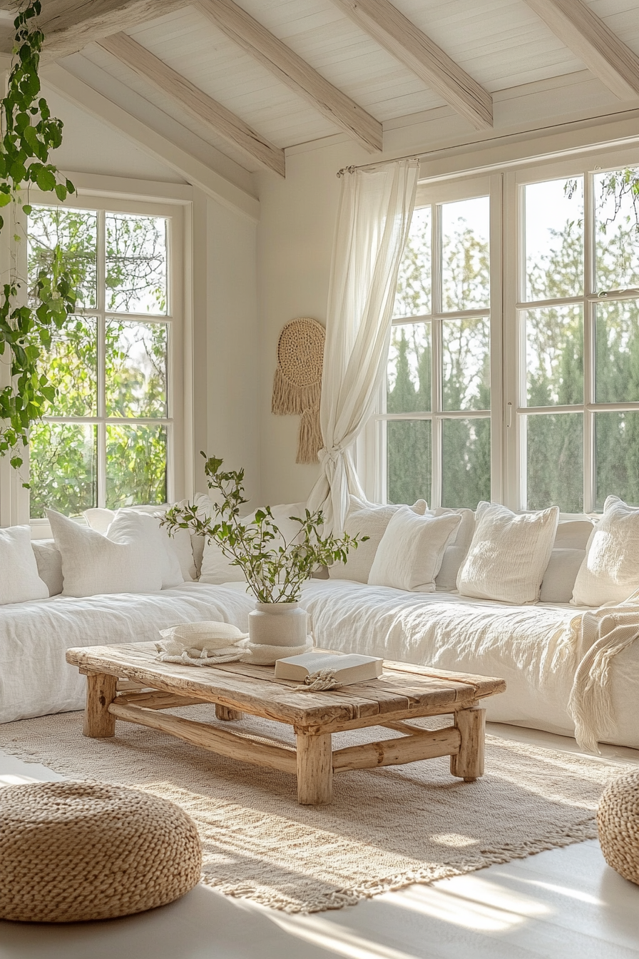 Bathed in morning light, this sunroom feels like a dream of peace. Natural fabrics and pale wood enhance the bright, uplifting vibe. The minimal design allows the light to do the talking. It’s a space for reflection, joy, and quiet moments.