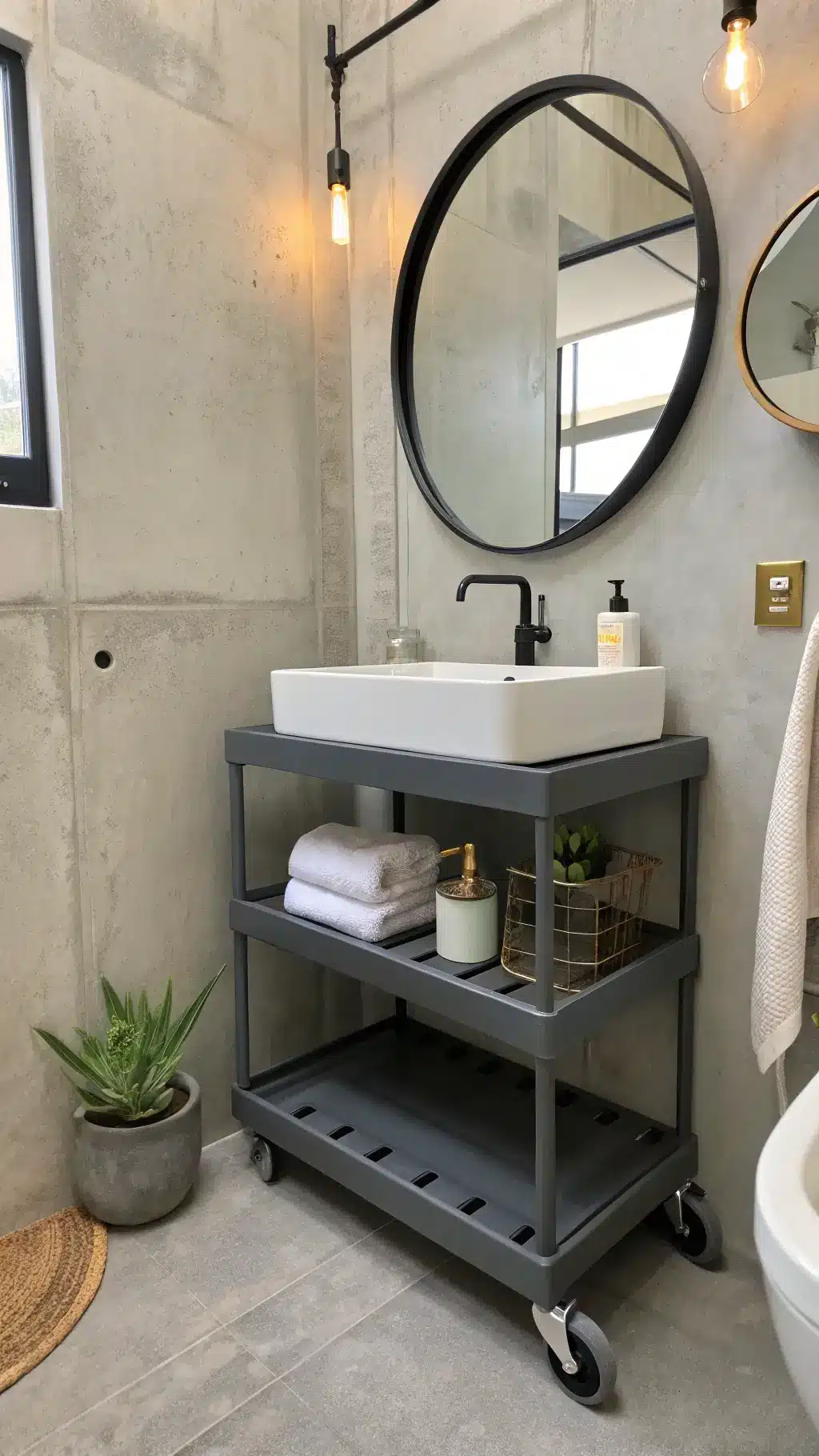 If your vanity has zero storage underneath, a narrow rolling cart is a game-changer.