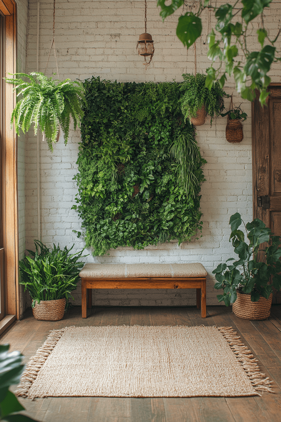Nature-inspired styling refreshes this tiny apartment entryway with calming greenery and organic materials. Hanging plants add life without taking up valuable space. Light wood and soft textures create a soothing environment. Functional storage keeps the layout organized. The overall vibe feels fresh and balanced. Bring natural elements into your entry for a revitalizing feel.