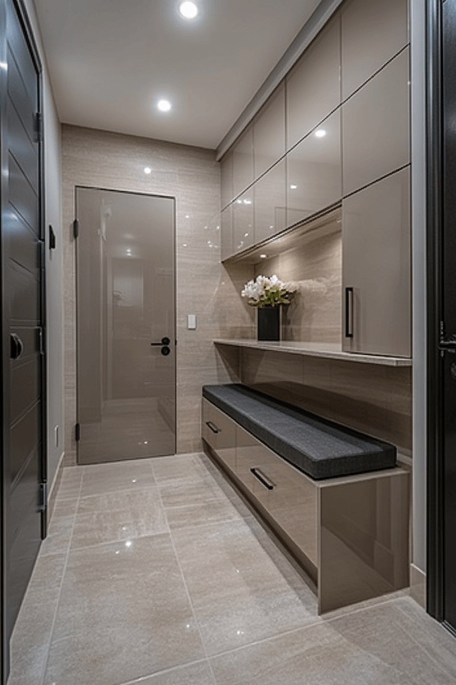 Subtle luxury enhances this tiny apartment entryway with refined materials and soft lighting accents. Marble details and elegant fixtures create a sophisticated focal point. Compact spaces feel elevated when styled with thoughtful pieces. Gentle lighting adds warmth while highlighting key elements. The overall look feels polished and upscale. Bring elevated style into your entry with touches that feel effortlessly refined.