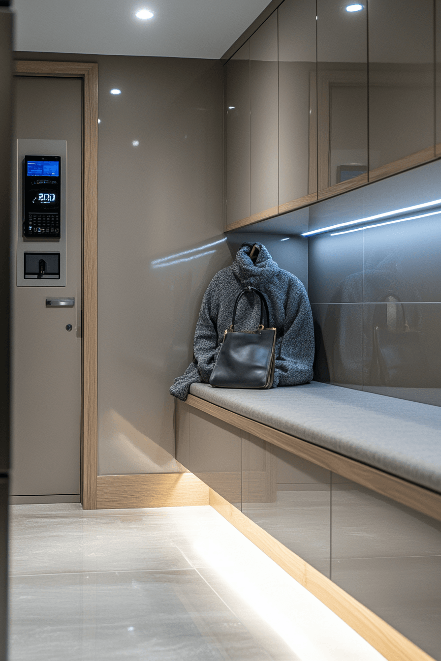 Smart features modernize this tiny apartment entryway with convenience and efficiency built into the design. Motion lighting and digital tools simplify everyday routines. Clean lines keep the space looking sleek. Technology blends seamlessly with style. The overall feel is modern and functional. Upgrade your entry with smart solutions that enhance daily living.