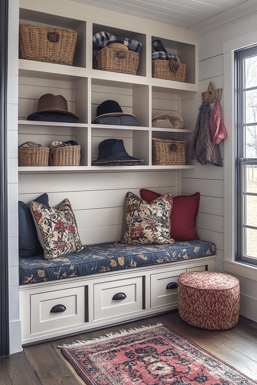 Relaxed boho styling fills this tiny apartment entryway with warmth, texture, and personality. Woven accents and layered textiles create a cozy and inviting atmosphere. Decorative hooks display accessories while adding visual interest. Natural materials tie the look together. The space feels creative and welcoming. Add boho-inspired touches that make your entry feel unique.