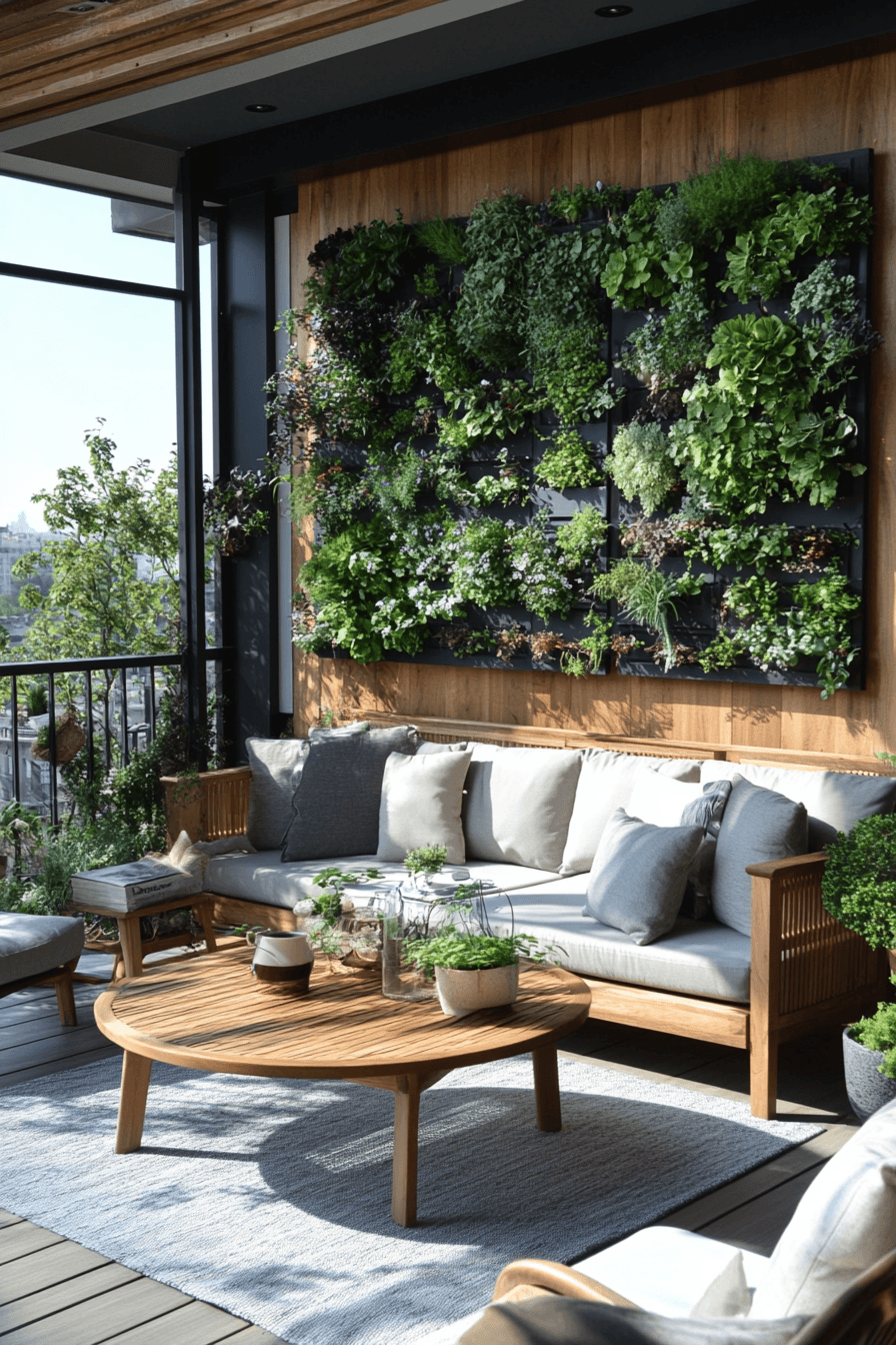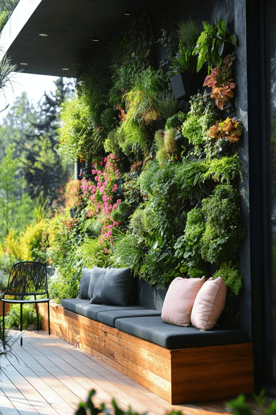 Vertical greenery transforms a tiny apartment patio ideas space into a lush and eye-catching feature. Stacked planters create layers of texture and depth. Keeping furniture minimal allows plants to stand out. The space feels vibrant and full of life. Ideal for maximizing greenery in small areas. Elevate your patio with vertical garden designs that make an impact.