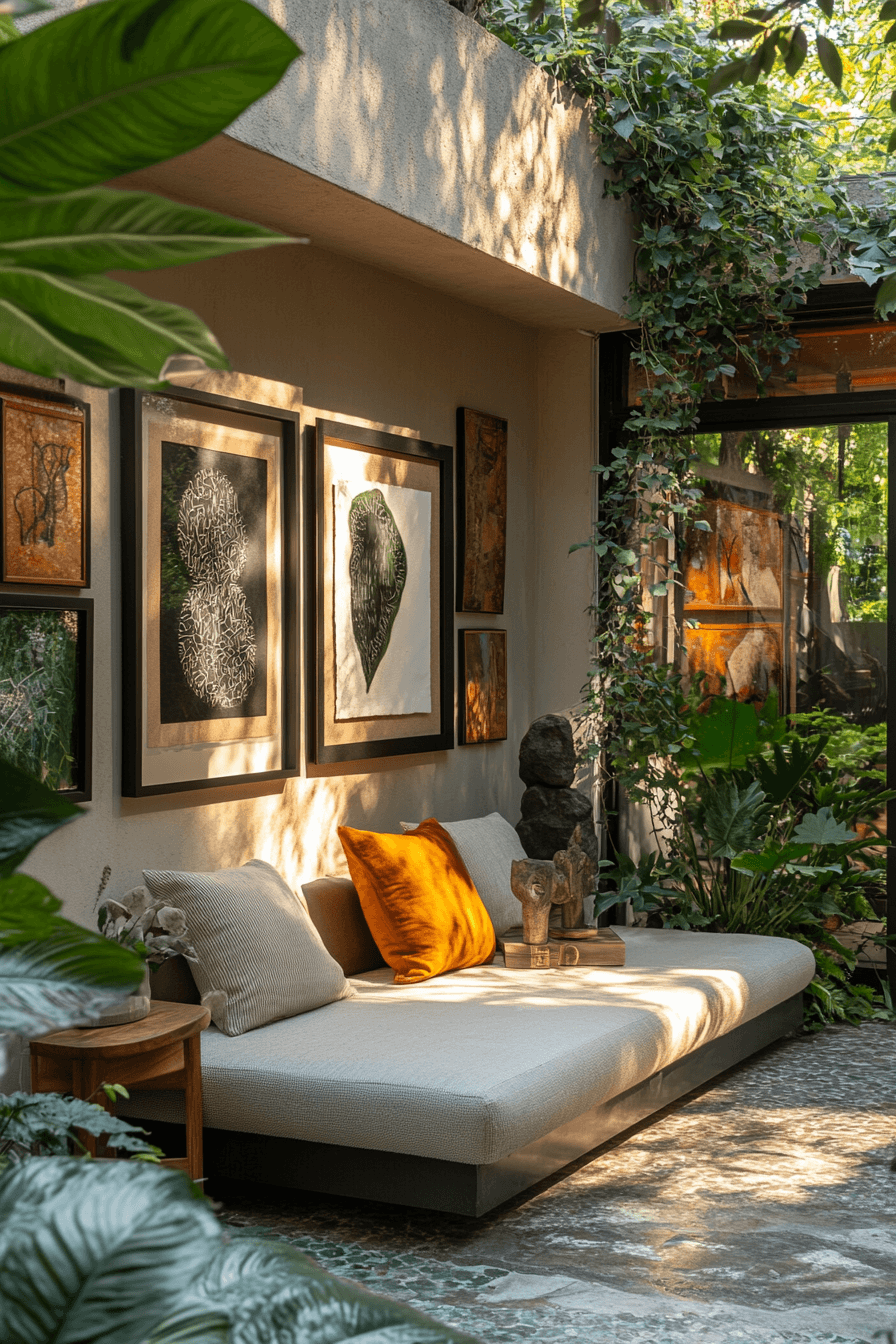 Creative expression transforms a tiny apartment patio ideas space into an artistic outdoor display. Sculptural elements add sophistication and interest. Simple arrangements highlight each piece. The open-air setting enhances visual impact. The patio feels unique and expressive. Create a space that reflects your artistic style.