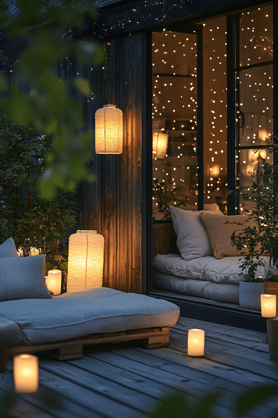 Soft lighting enhances a tiny apartment patio ideas setup by creating a cozy and inviting nighttime atmosphere. String lights and lanterns add warmth and glow. Strategic placement highlights key features. The space feels relaxing and comfortable. Lighting adds both style and function. Brighten your patio with lighting that sets the mood.