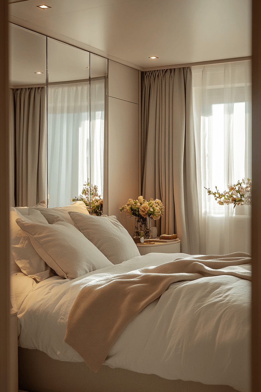 Visually expand your space with tiny bedroom decor that incorporates mirrors and reflective finishes. These elements bounce light throughout the room. This helps tiny bedroom decor feel larger and brighter. The subtle shine adds elegance. Natural light enhances the effect even more. Open up your room with these tiny bedroom decor ideas.