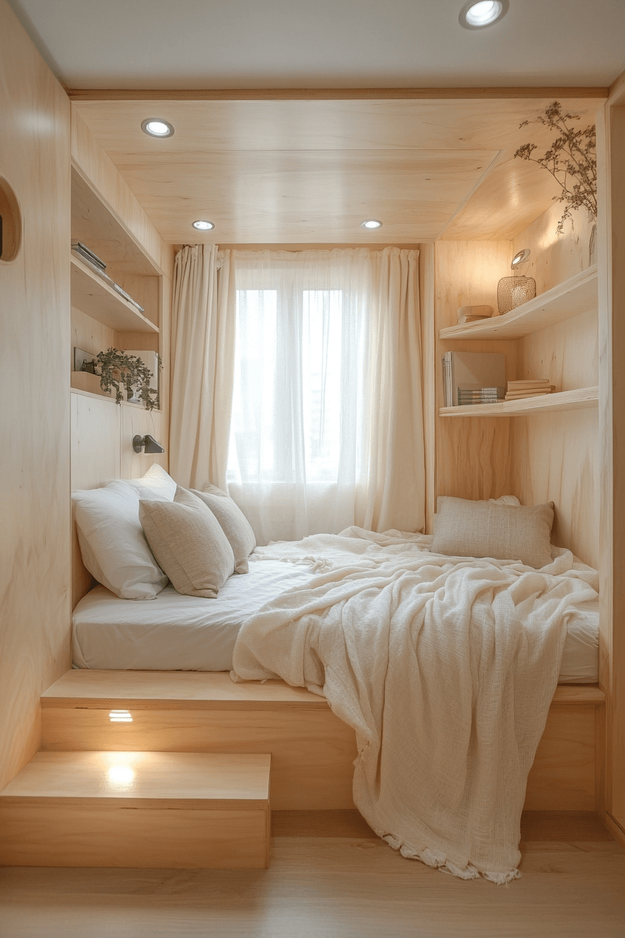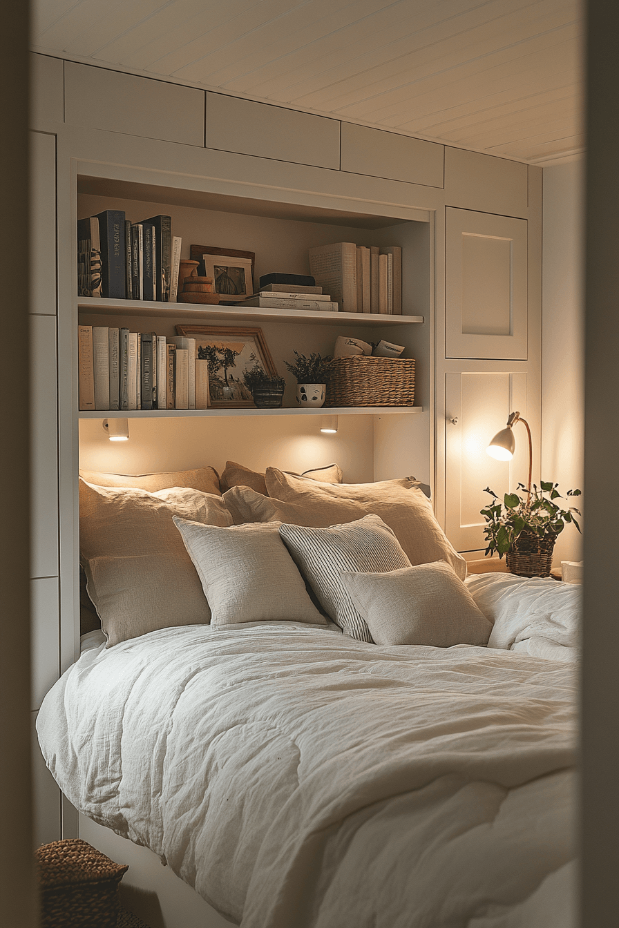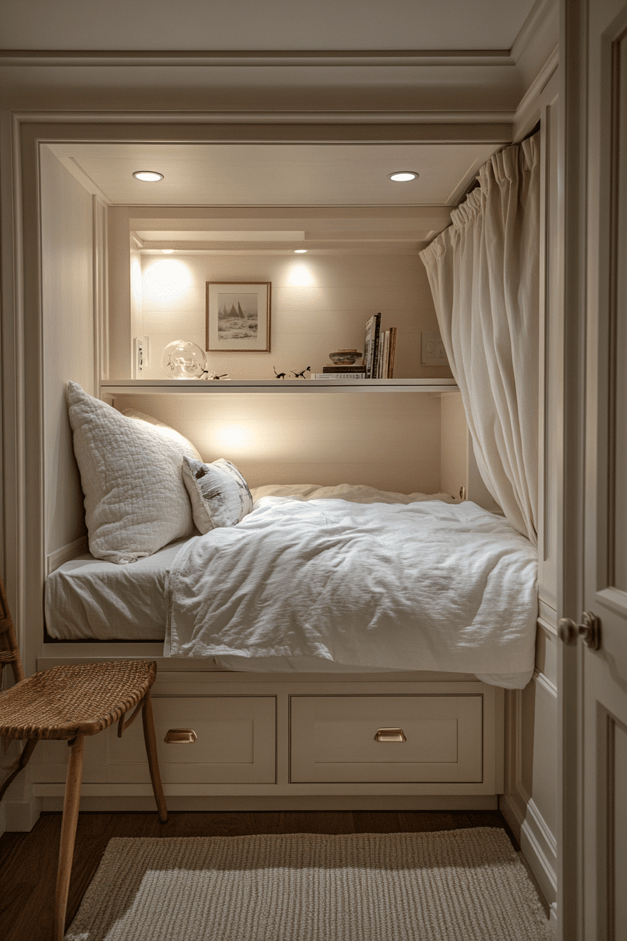 Create a cozy retreat with tiny bedroom decor that turns small nooks into functional sleeping areas. Alcoves or tucked-away corners become stylish focal points. This keeps tiny bedroom decor efficient and creative. Built-in storage and warm lighting enhance comfort. Plush accents add a welcoming touch. Design your perfect nook with these tiny bedroom decor ideas.