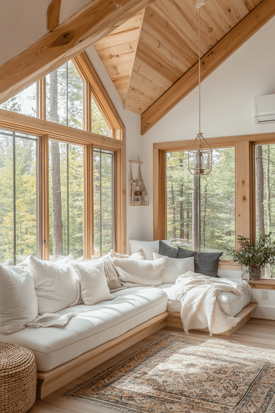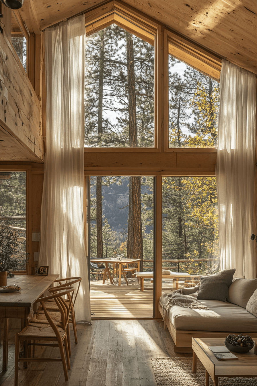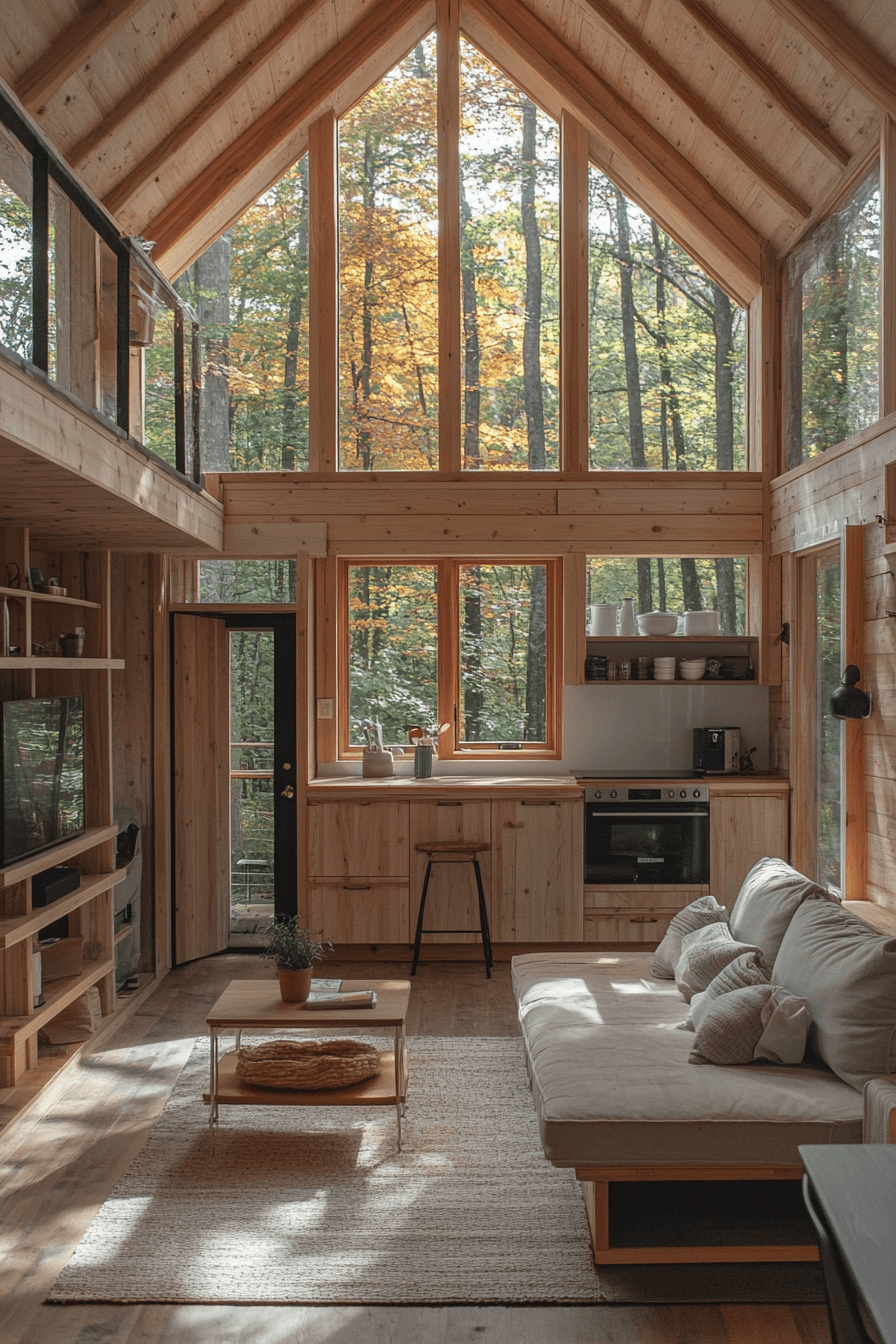 Natural light transforms tiny cabins interiors by creating a brighter and more open environment. Large windows and skylights allow sunlight to fill the space. Minimal coverings keep the look simple and clean. The interior feels connected to the outdoors. Fresh air and daylight enhance comfort. Bring more light into your cabin with thoughtful window design.