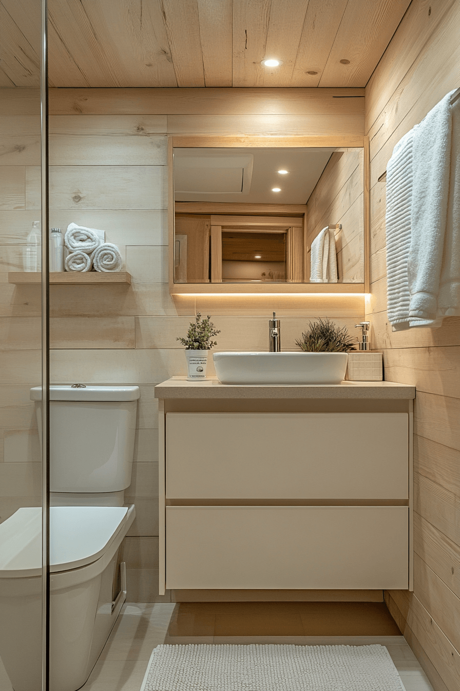 Compact bathrooms can still feel stylish and efficient in tiny cabins interiors with smart design choices. Floating fixtures and corner layouts maximize space. Light finishes and mirrors create a more open feel. Multipurpose features add practicality. The design remains clean and easy to maintain. Discover bathroom ideas that make small spaces feel elevated.