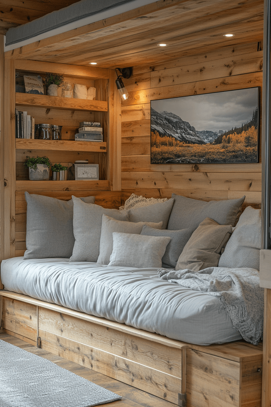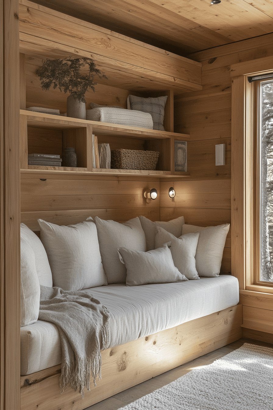 Built-in sleeping alcoves offer a warm and inviting solution for tiny cabins interiors by adding comfort without taking up space. Tucked into walls, these nooks provide a sense of privacy and coziness. Integrated lighting and hidden drawers enhance usability. Soft cushions and layered bedding create a snug environment. The design feels intimate and practical. Discover nook designs that turn small spaces into cozy escapes.