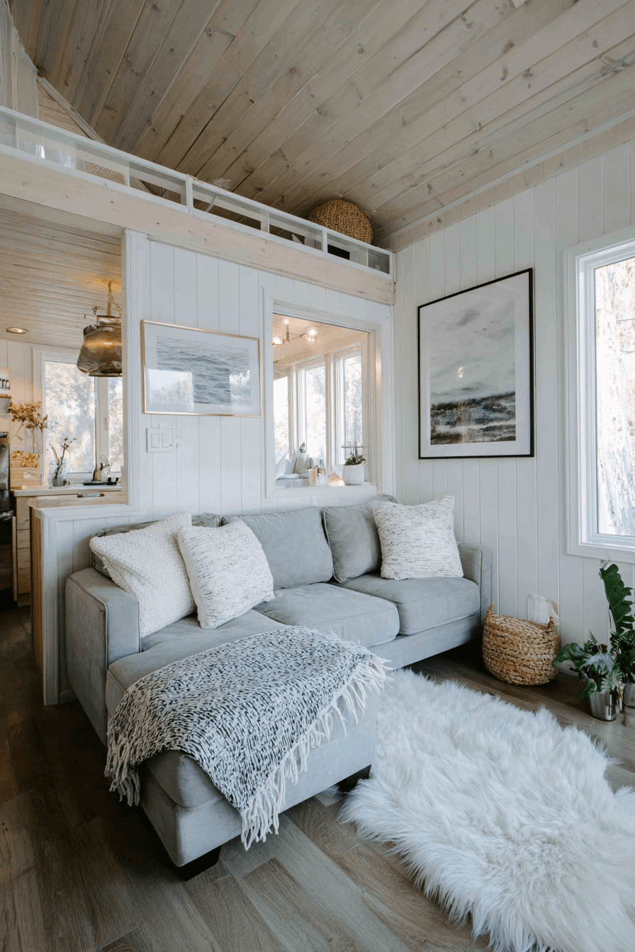 Bright, airy design choices help tiny cabins interiors feel larger and more welcoming through light and openness. Soft colors reflect light while mirrors expand the visual space. Minimal furniture keeps everything uncluttered. Warm accents maintain coziness. The space feels fresh and inviting. Create a cabin that feels open and full of light.