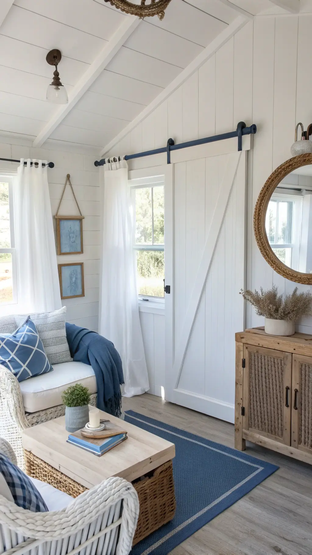 • One or two bold pops (maybe a blue sofa or lots of green plants)