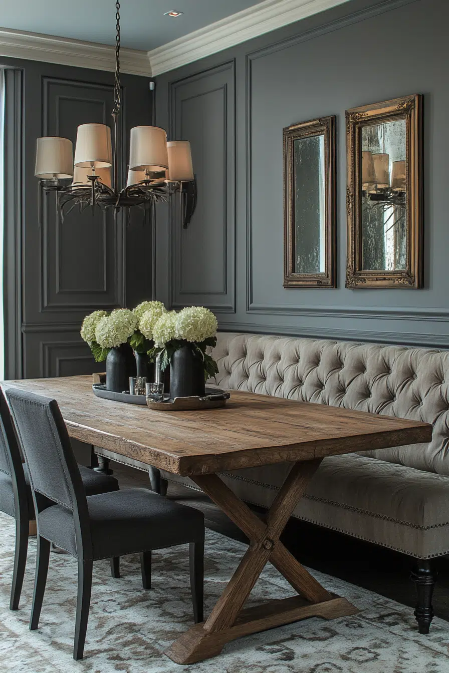 Refined Rustic elevates the vintage modern farmhouse with luxurious textures and finishes on a budget. Introduce elements like affordable crystal lighting and a gourmet kitchen setup into your rustic space. This blend offers a unique, opulent yet simple living environment.